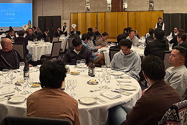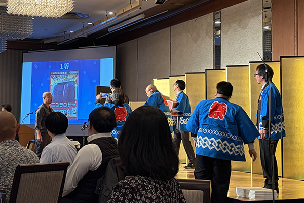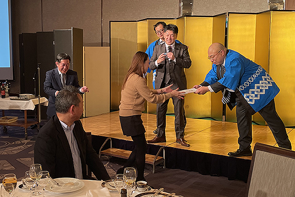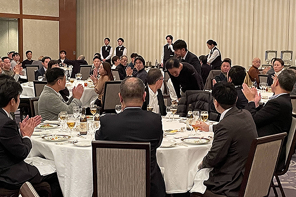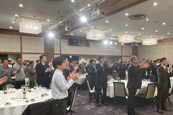2025年12月26日(金)、リーガロイヤルホテル京都にて忘年会を開催いたしました。 本年も総合司会をフリーアナウンサーの「村田千弥」さんに務めていただき、スペシャルゲストとして「ぱーてぃーちゃん」に会場を盛り上げていただきました。また、年末恒例の豪華賞品が当たる大抽選会は、本年も大いに盛り上がり、大盛況の忘年会となりました。